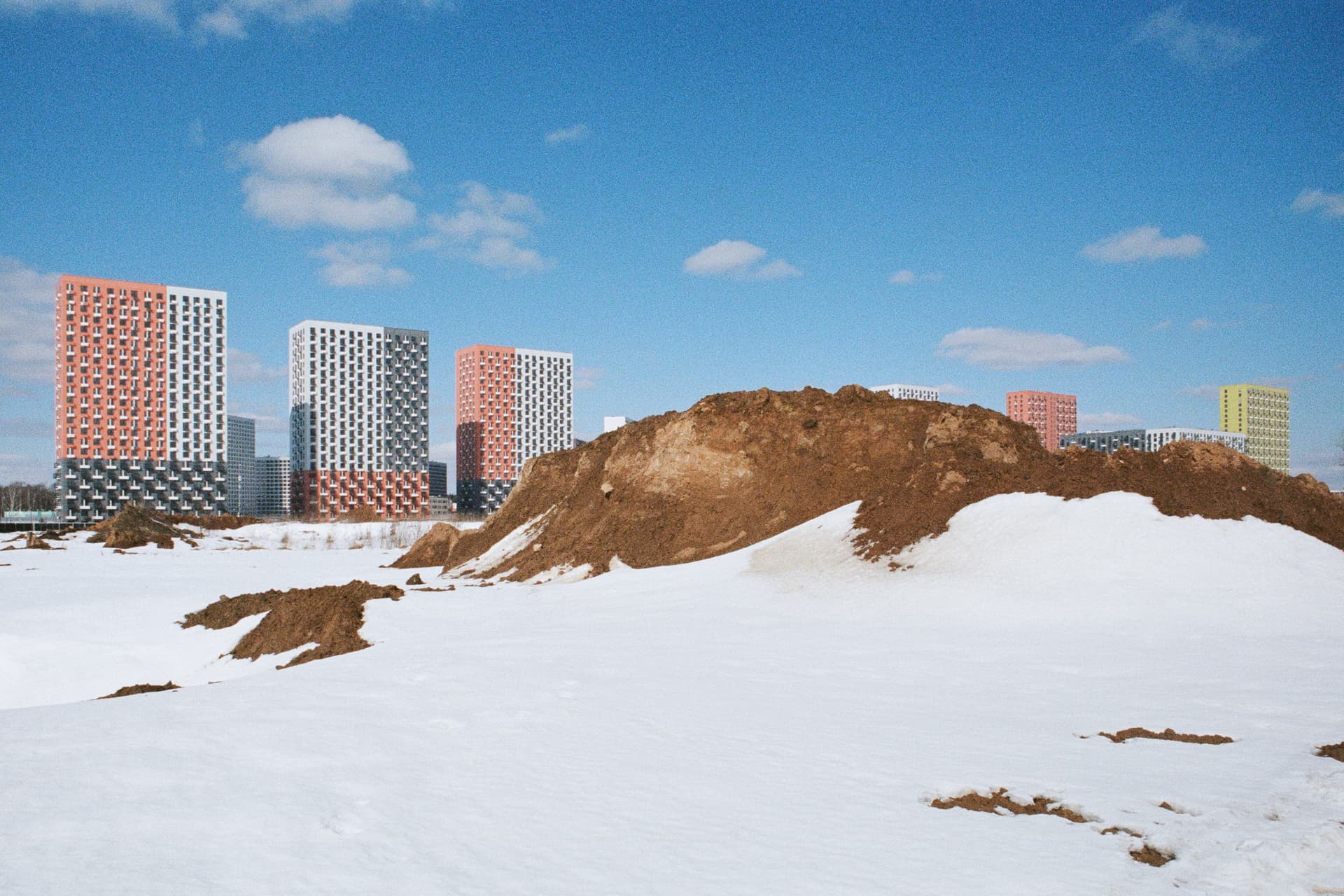 Today, the outskirts of Russian cities continue to grow with typical high-rise panel buildings. They are often built right in the middle of the fields, torn from the rest of the city and surrounded by wastelands and industrial zones. Some might call them modern city frontiers and compare their architecture with anthills.