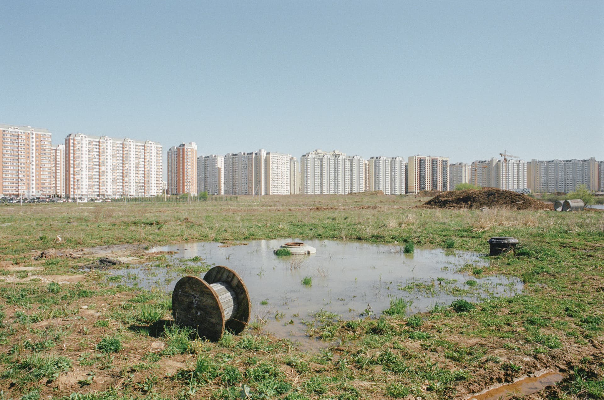 I grew up in a similar neighborhood, built in the early 90s on the outskirts of Samara. I lived only a few «90K-series» blocks away from the place where the «city» actually ended. Further on were rows of metal garages, ravines, and dachas drowning in greenery and emptying most of the year. That is probably why I am used to these large, unsettled spaces, wide, half-empty roads, and chaotic nature around. That is probably why I don't find these new neighborhoods disturbing, gloomy, or dystopian; on the contrary, they often evoke a sense of nostalgia and bring back some childhood memories. At the same time, I understand all the possible issues of living in these neighborhoods. Both domestic issues, like transport accessibility and lack of infrastructure, and social issues, like stress, atomization, and loneliness.